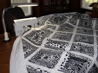 Recently, my "baby" graduated from college. I wanted to do something special to celebrate this milestone in her life so I told her I would make her a quilt...her first bed quilt made by me. I thought about making this a surprise, but decided to get her involved in the process of choosing the color and pattern. Her decision? A black and white string quilt. Black and white? Are you serious? I had never seen an all black and white quilt. This was going to be an adventure!